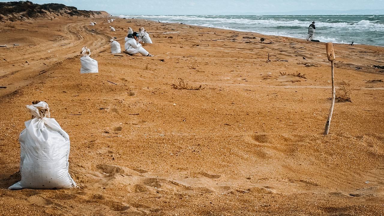 Сотрудники регионального МЧС, аварийно-спасательного отряда «Кубань-СПАС», волонтеры сообщества «Сети, сити, лопата», местного отделения «Единой России», студенты Анапы и представители муниципалитетов Кубани за неполную неделю очистили от свежих выбросов нефтепродуктов, произошедших в двадцатых числах октября, все 14 километров Бугазской косы.