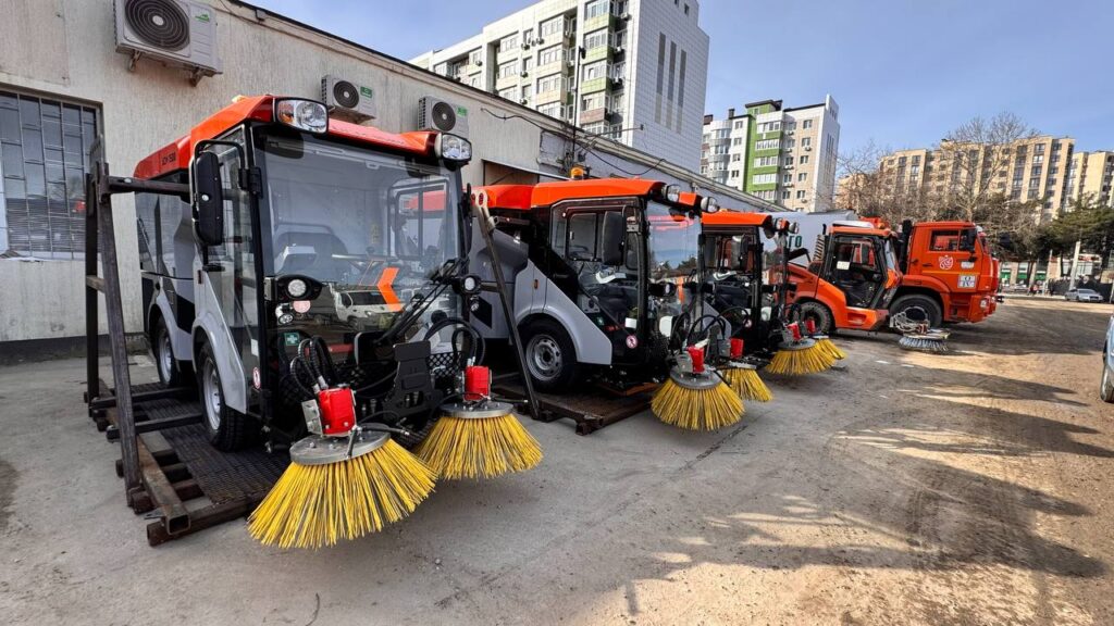 Автопарк предприятия «Благоустройство» пополнился тремя комбинированными дорожными и пятью универсальными коммунальными машинами, мусоровозом, бункеровозом, вакуумной подметально-уборочной машиной и двумя автогидроподъемниками.