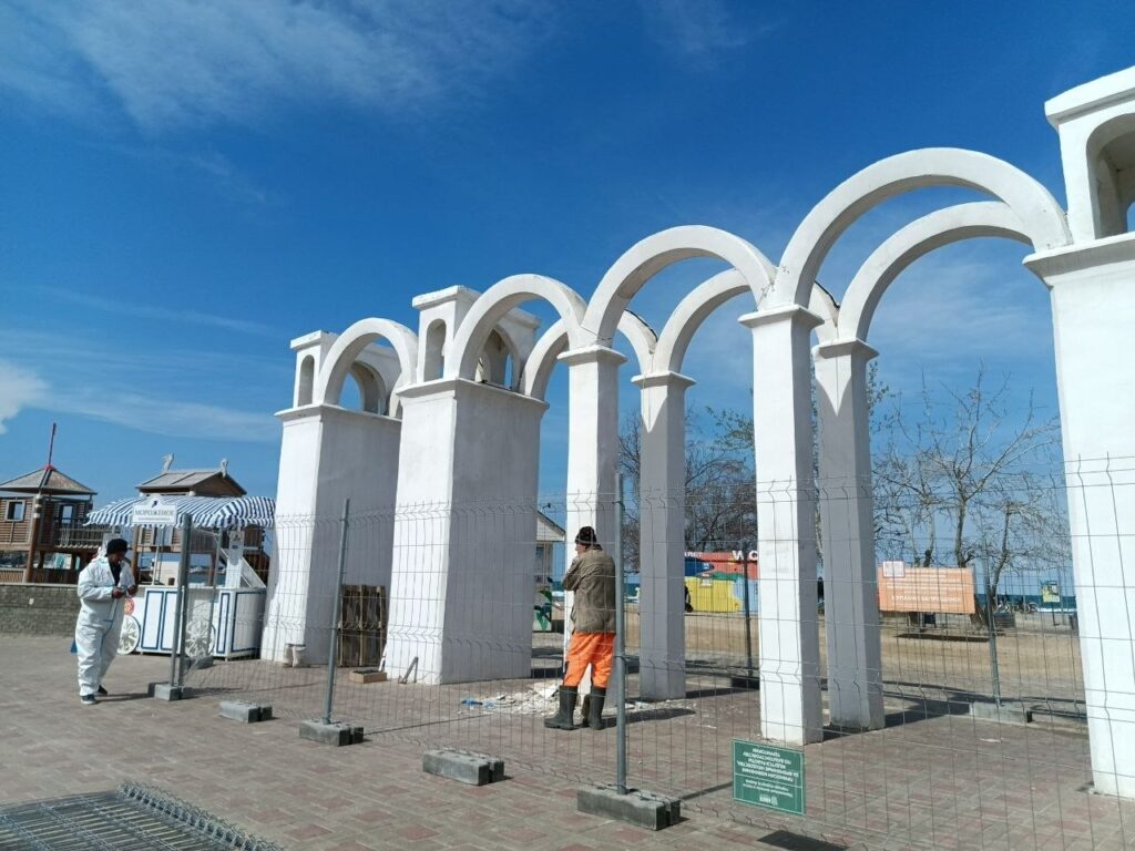 В настоящее время специалисты предприятия «Благоустройство» проводят зачистку поврежденных участков арки. Далее запланированы работы по её оштукатуриванию и приведению конструкции в надлежащее состояние.
