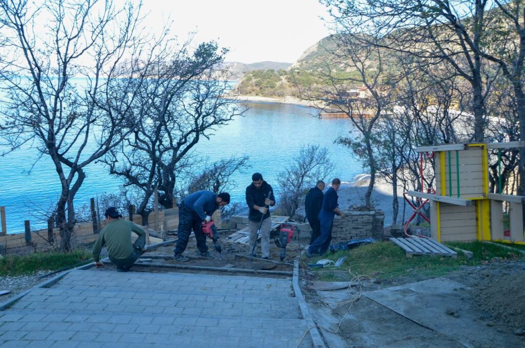 В рамках благоустройства сейчас ведется реконструкция ограждения протяженностью 150 метров и пешеходной дорожки. Также на территории установят новые лавочки, урны и современную детскую зону. Для безопасности на смотровой площадке сделают ограждения, а вдоль всего спуска к морю смонтируют освещение. По просьбе местных жителей возле лестницы оборудуют пандус для маломобильных граждан.