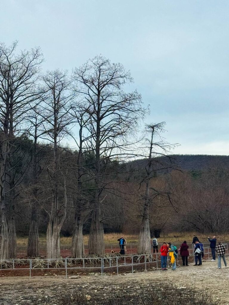 Желающих увидеть кипарисы в эти дни достаточно много, сами деревья от любителей вплотную к ним подойти для того, чтобы сделать фотографии, защищает ограждение.