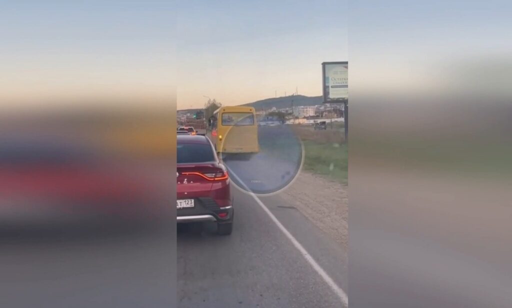 Водитель маршрутного автобуса грубо нарушил Правила дорожного движения, съехав с проезжей части, чтобы объехать образовавшуюся пробку в направлении села Супсех.